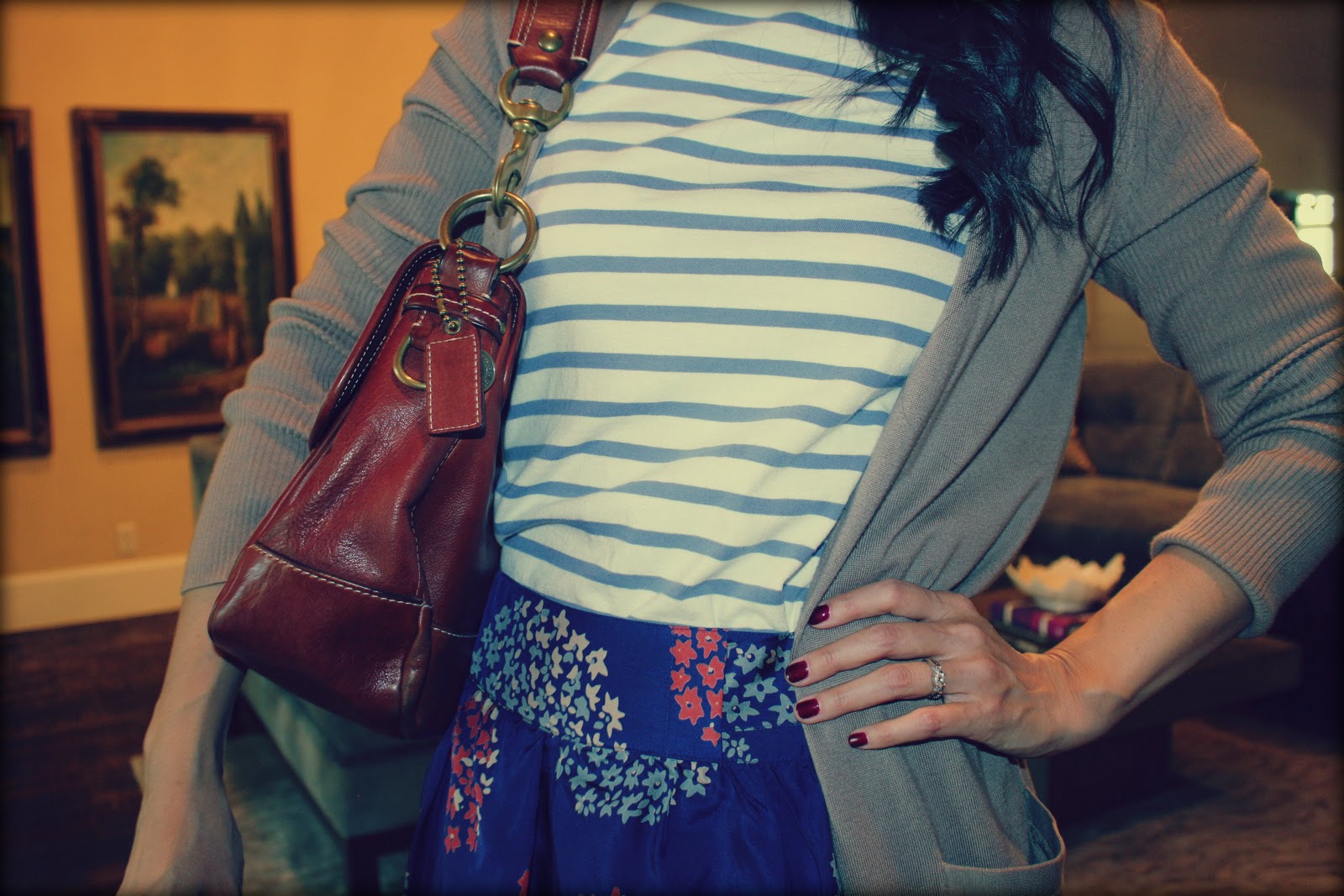 Love your mix of prints here, and the addition of the brown boots and purse. I really love boots too (I just posted about boots) and love adding boots and scarves to spring pieces to transition them into fall.