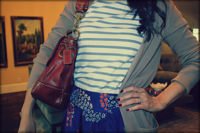 Love the skirt, it looks great with the striped shirt. You look gorg!