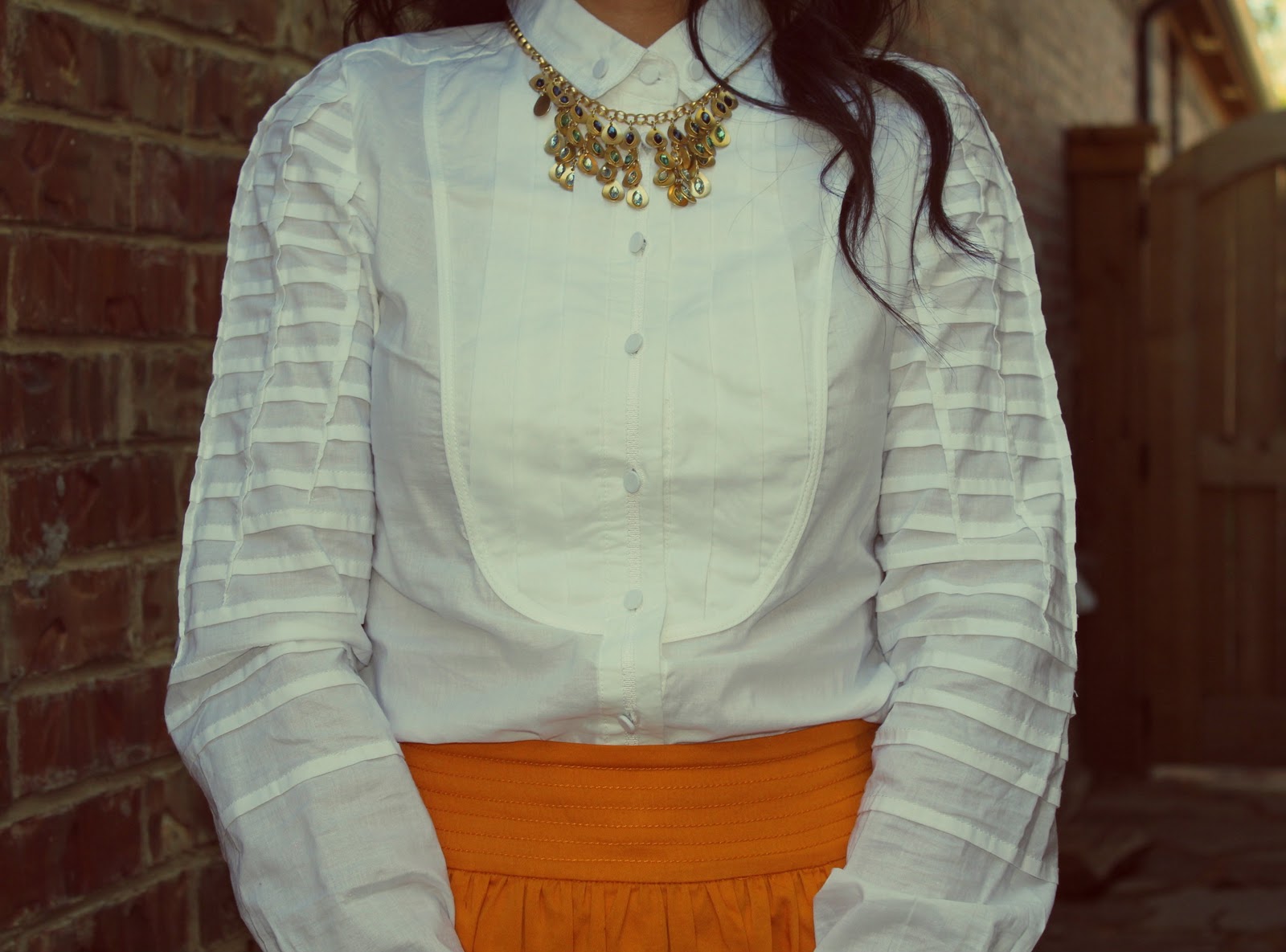 Hey Sam! Anthropologie and JCrew have awesome marketing departments. They’re my favorites too. I also like Nordstrom. Your outfit is so sweet. I love the color of that skirt and the pleats in your shirt. Your neighbor is awesome. That bag is adorable and goes great with that outfit. I haven’t tried jewels with a blouse. I think it’s an awesome look! Hope you’re having a great day.