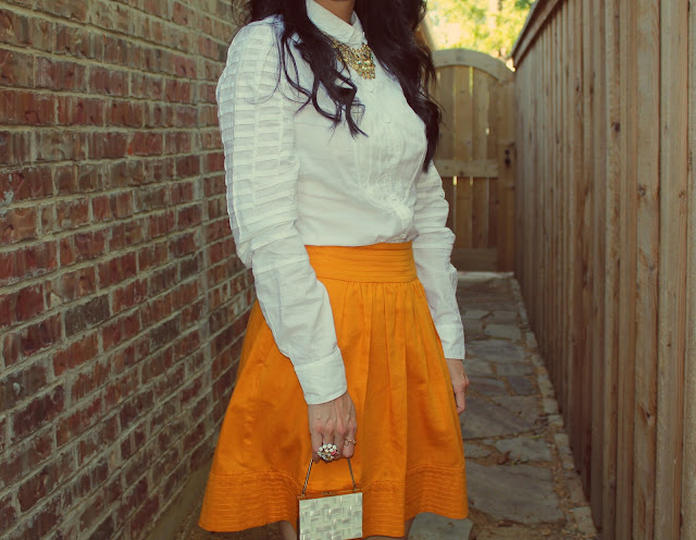 Very j-crewish look I must say. I love the color mustard and the shade on this skirt is perfect! White and mustard are a perfect combo. Love all the beautiful accessories as well. What a great idea about saving the catalogs from the store as inspiration. Must try that out, thanks!