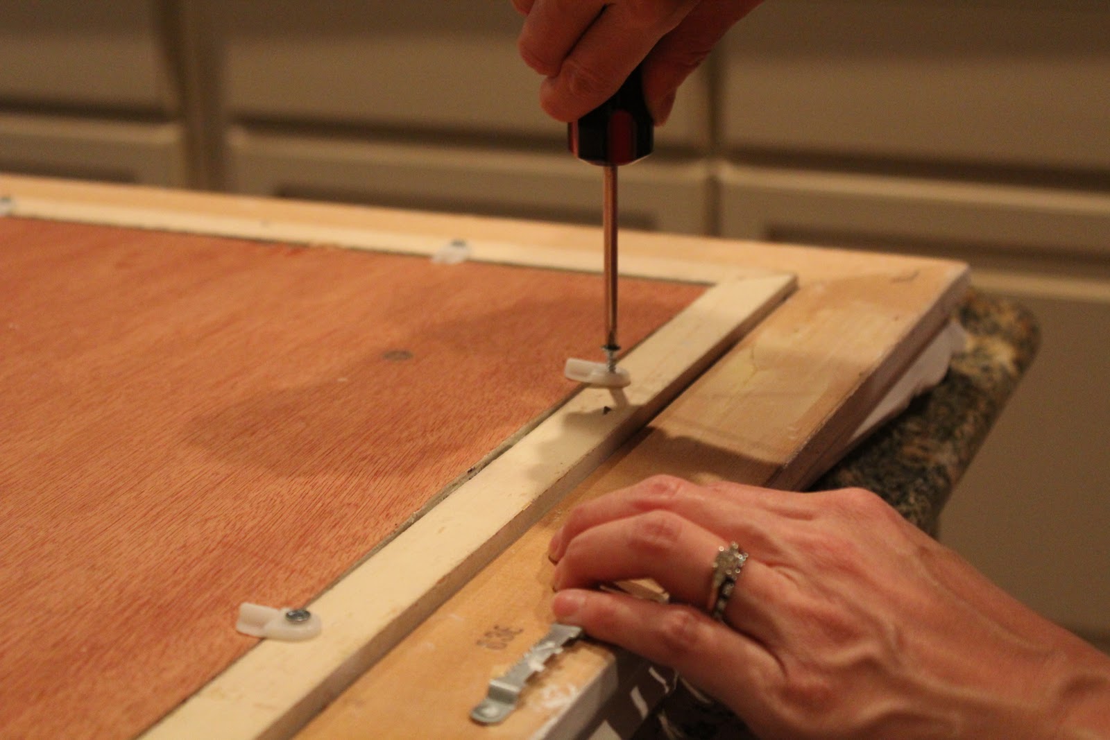 - Wood Screws (I used size 6 x 5/8 to fit into the turn buttons.)