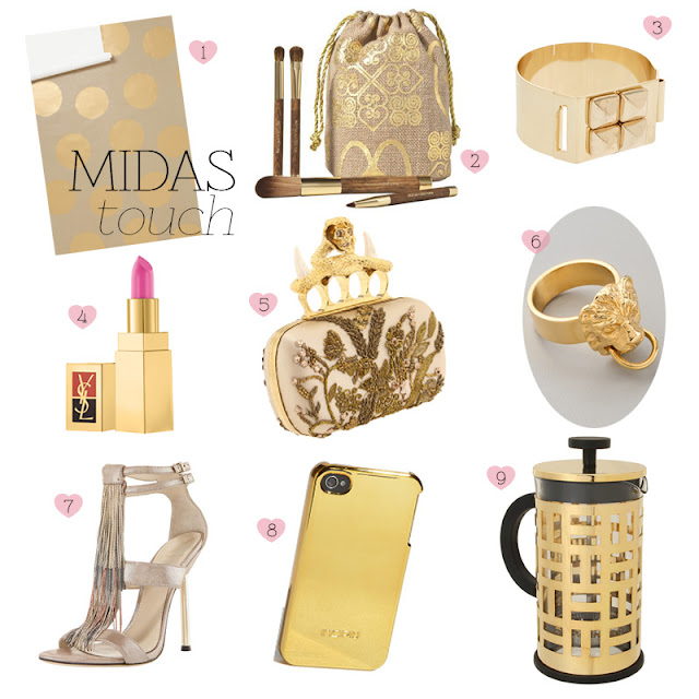 I am gold obsessed, seriously! I buy more gold accessories and things that I always think of the Austin Powers Goldmember movie ;) LOVE this set, so pretty! That Alexander McQueen clutch is awesome! Hope you are having a great day!