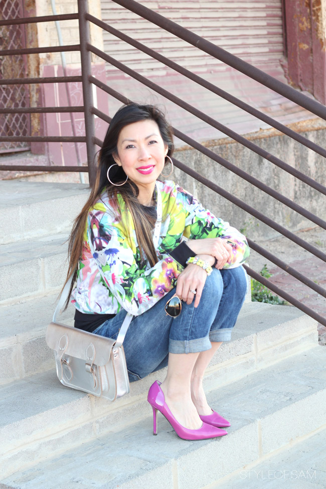 It’s hard not to reach for the sweatshirt everyday because 1) it’s a sweatshirt – can you say comfy?! and 2) it’s bright so it’s perfect for the chilly Spring weather. And then, there are the boyfriend jeans. They are way too comfy to ever want to wear anything else! I thought the heels would elevate the outfit to a casual chic, but Mr. S said NOT APPROPRIATE for where we were going.