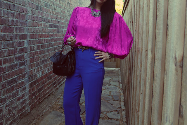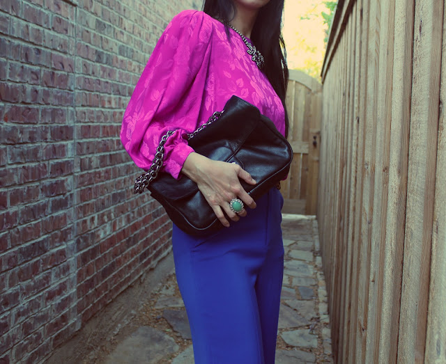 I needed this blouse in my life! It’s 100% silk and has wonderful bishop sleeves. A billowy top is a great balance for wide leg pants, and this blouse is perfect for colorblocking! I was eyeing this DVF blouse to go with these cobalt blue pants (when I saw the colorblock combo at a FNO), but this blouse fit the bill better in my opinion!