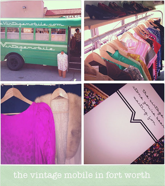 You know how much I love thrifting! This weekend, I was thrilled to find out that The Vintagemobile was in Fort Worth! This awesome green bus is full of vintage treasures. They have men’s and women’s clothing and shoes, concert shirts, and housewares just to name a few things! Even Mr. S found a vintage cowboy shirt!