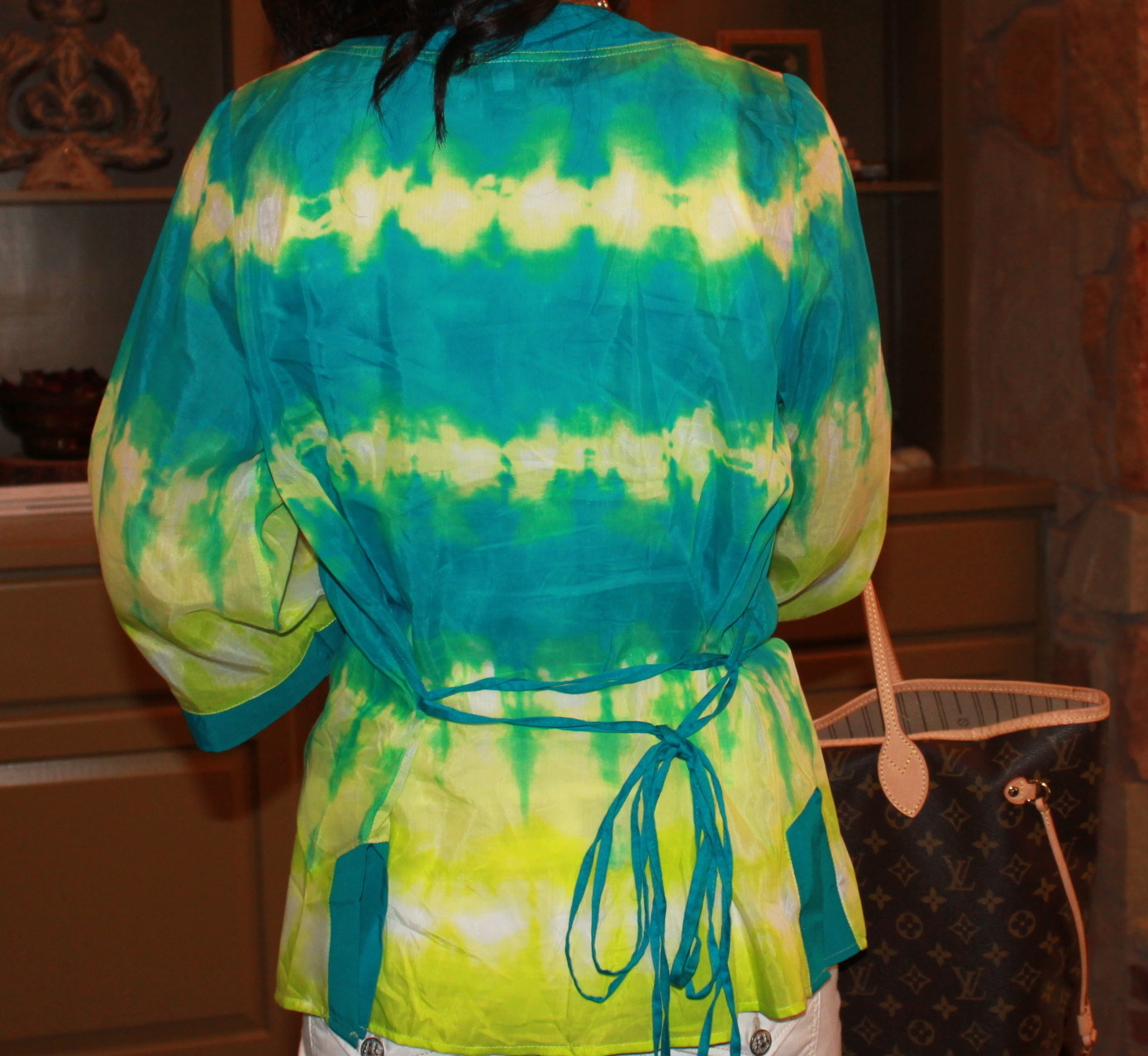 I used the belt it came with to cinch it in back and I safety pinned the extra ties on the inside (for use as a robe) so I could wear it out!