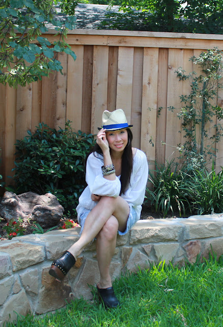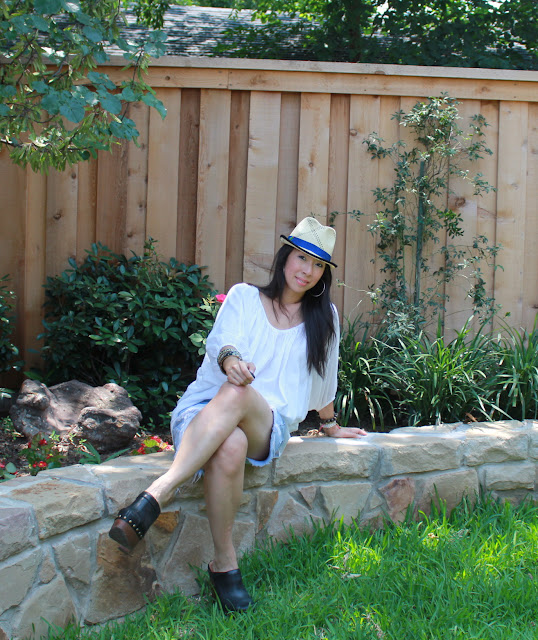 Mr. S is always scared when I do “casual”. One of my favorite pair of shorts (that aren’t really seen in public) are an old denim pair with holes from my dad! My casual style probably translates to “man repeller”. If you aren’t familiar with her blog, check it out here. Hilarious! Me relaxing in the yard doing “casual”…