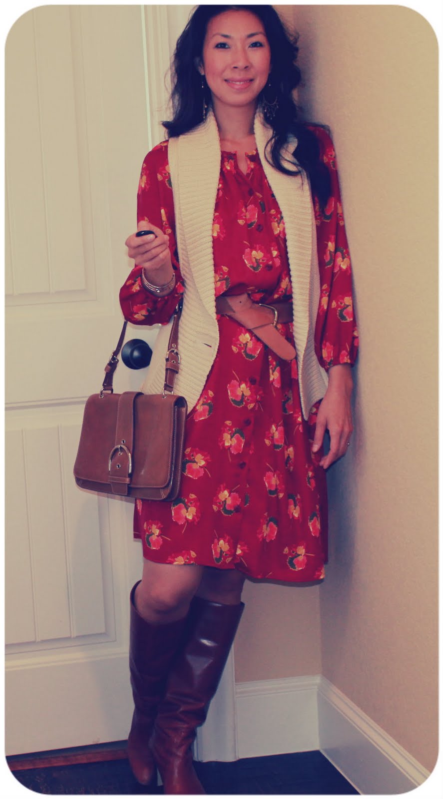 I found this post in my drafts – it was from months ago when it was chilly!  (Oops!)  It’s too hot to even think about sweaters and boots, but I am anxiously awaiting the Fall!  Fall and Winter are my favorite seasons!  I LOVE everything about about it… the smell of the air, leaves changing colors, using the fireplace, Anthropologie’s sweaters (just kidding, but not really)!  And I LOVE LOVE LOVE layering (and it’s a must in Texas because mornings start cool and the afternoons are warm).  The vest is a great Fall/Winter accessory because you take it off when it gets too hot!  It’s definitely one my staples during Fall.