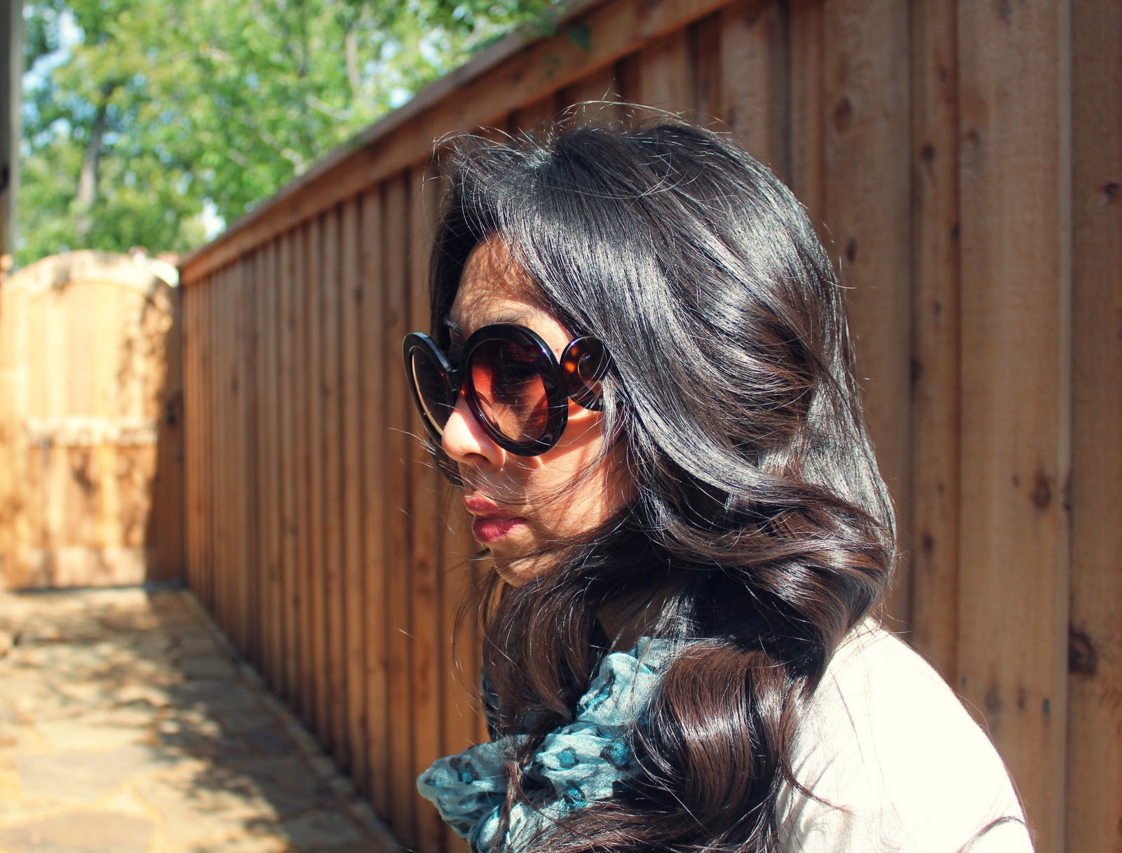 You look GORGEOUS! Love the shirt, love the scarf, love the sunnies, love it all!