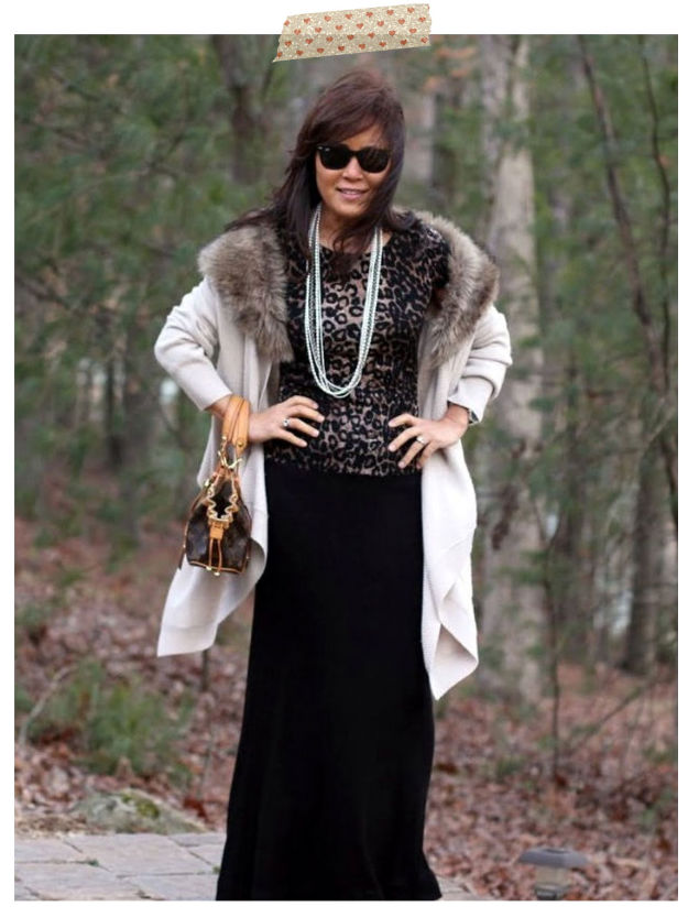 Howdy to the lovely Jeannie of Gracefully50! She said this outfit wasn’t exactly glam! But I think pearls and fur make anything glam! You can head over to Jeannie’s blog for some gorgeous fashion and wonderful inspiration!
