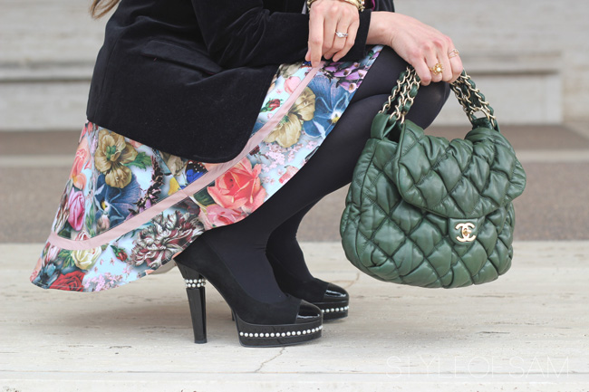 Oh my gosh! I LOVE this skirt so much and the quilted green bag :) Amazing as always!