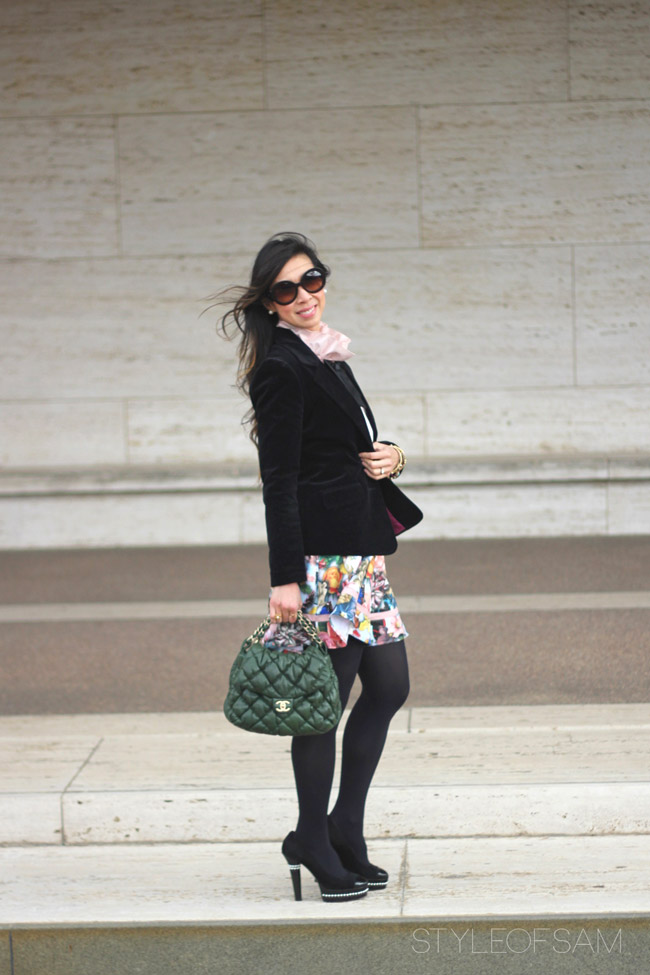 Oooh! I love this look!!! Sooo pretty! And that blazer is awesome!! LOVE the color and shape of your bag, too