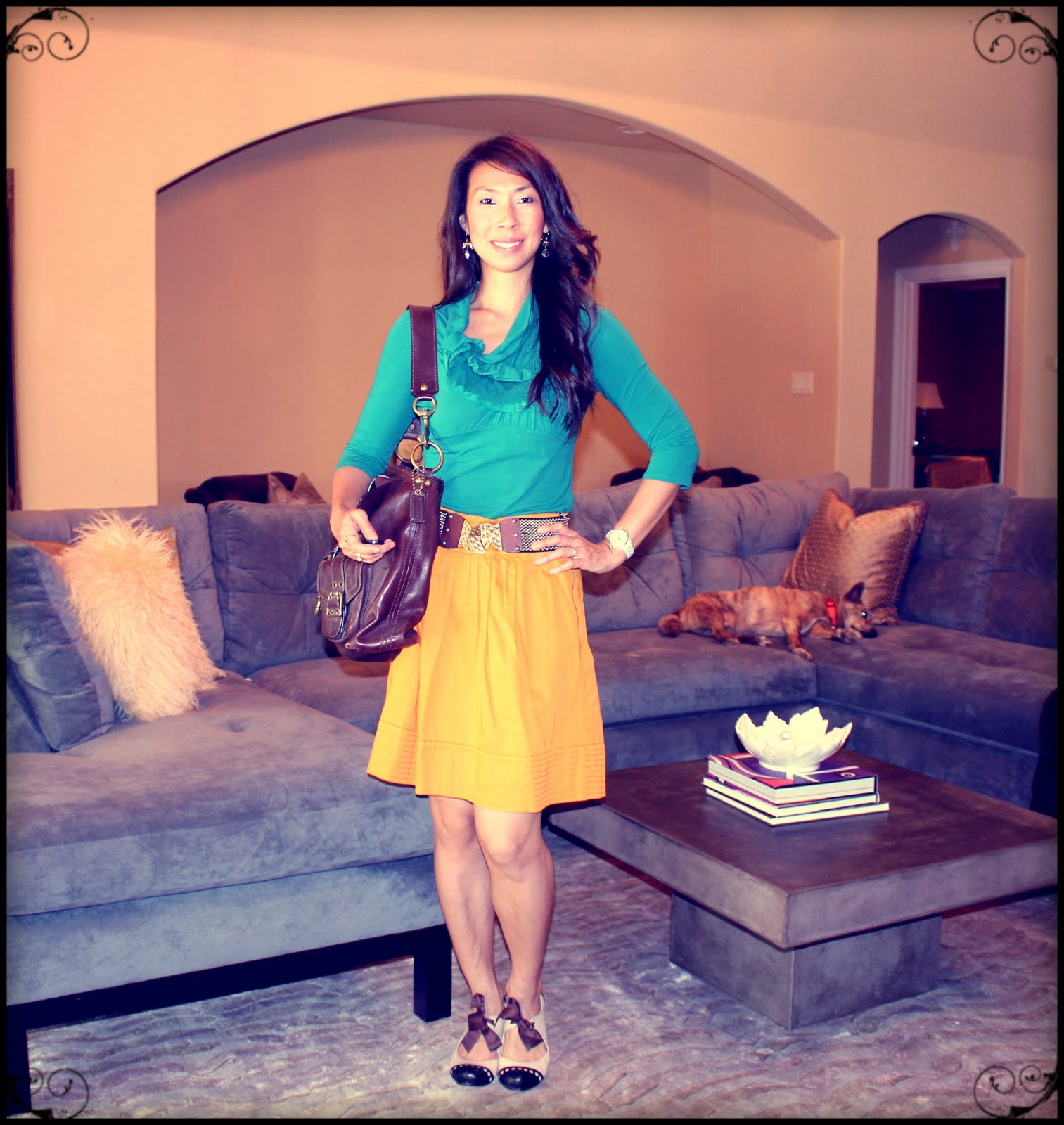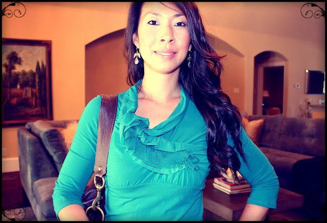 I love the ruffles on this top!  It’s so girly!  And the earrings were a great find from Target – it was a collaboration, but the name escapes me.  I got them on sale.