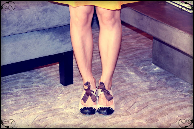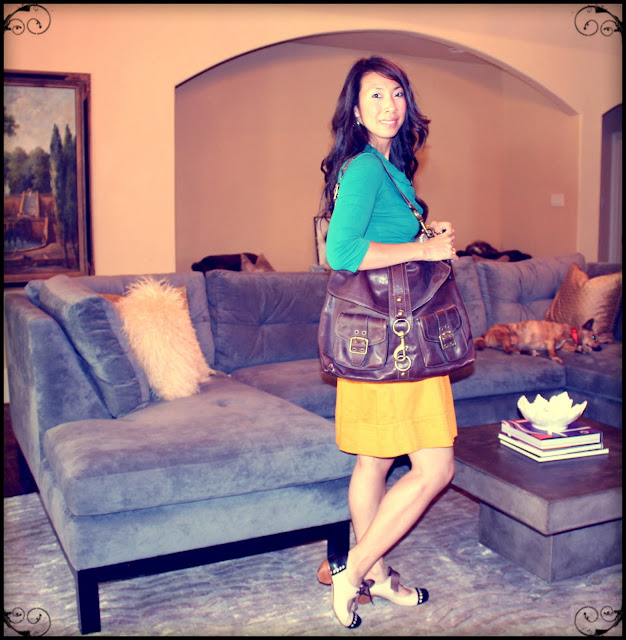 Right, so that combination of colors usually is on a John Deere tractor… but I was so excited after my coworkers gave me an Anthropologie gift card for my birthday!  (Aren’t they the best?)  I bought the top and skirt at (get ready for it) FULL PRICE!  I think I was so thrilled that I HAD to wear everything Anthropologie that day!  And, yes, the shoes are a hybrid between bowling shoes and jazz shoes.  I couldn’t resist… bows, black, brown, and cream?!  Hello… all neutrals… those shoes will go with everything!  AND I could wear them to run around at work since they had shorter heels.  Anyways, this is an outfit I wore to work.  I think I scared the secretary a little with all the colors.  Oh well, at least I was blissfully unaware that I could cause a seizure with all the colors (because of my happiness with the bow shoes).     {Part of my Workin Gal series!}